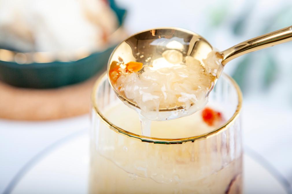 这是开水冲泡后的冻干银耳羹。