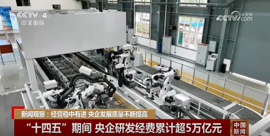 “十四五”时期,中央企业资产总额连续跨上70、80、90万亿元三个台阶,规模实力、价值创造能力和品牌影响力明显增强。央企研发经费投入累计超过5万亿元,新兴产业投资年均增速超过20%,科技人才数量增加近50%,新质生产力发展势头良好。