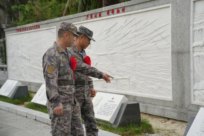 近日,海军西沙某部组织满服役期老兵来到驻地烈士陵园,和战友一同种下一株椰子苗,表达对先烈的敬意,同时象征着继续和战友们并肩作战!