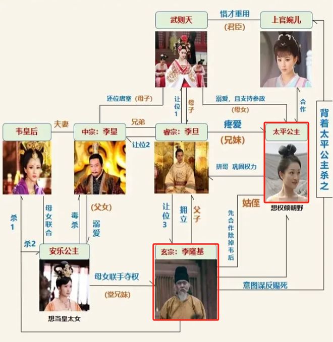 其实从武则天到李隆基这祖孙三代中,出现了好几位厉害的女性角色,除了武则天本人,还有她的儿媳妇、李显的韦皇后和女儿安乐公主,这母女俩也想模仿武则天改朝换代当女皇,母女俩不惜联手毒死了亲夫/父,秘不发丧,密谋夺权。