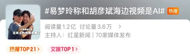 今天下午,红星新闻记者联系上易梦玲,求证她与胡彦斌的关系,易梦玲没有直接回答关于“两人关系”的提问,但她称海边合影视频是ai的。