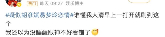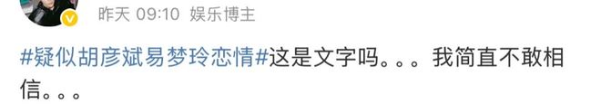 咱也数不清楚胡彦斌和易梦玲这两天到底上了多少个热搜,反正从昨天一睁眼开始,就一直在被这俩人的消息疯狂轰炸——