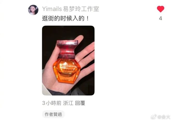 随手一搜胡彦斌,好多记录都指向他常用“我非观赏物”这个味道;而巧的是,易梦玲之前回复粉丝问她用哪款香水时,晒出来的也正是这一瓶。