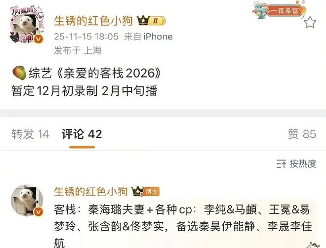 传得那叫一个有鼻子有眼,甚至有说法称《亲爱的客栈》要找两人以cp形式录制。