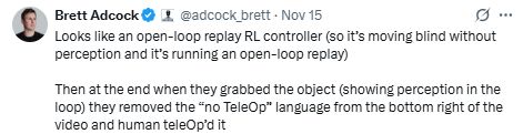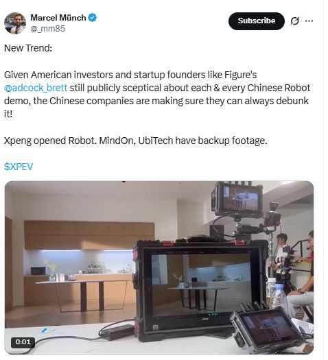 Brett Adcock对中国机器人公司的成果似乎抱有普遍的怀疑态度。此前他公开质疑中国另一家机器人公司——优必选(UBTECH)的帖子,并直言不讳地指出: