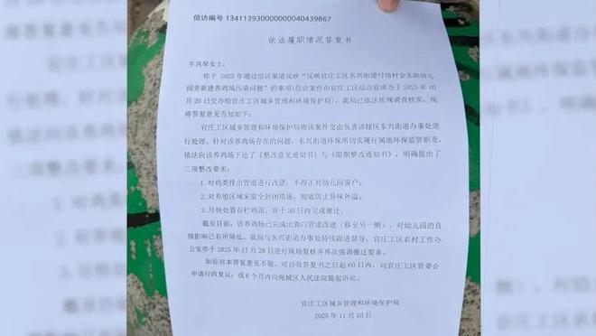 随后,南阳市官庄工区城乡管理和环境保护局于11月25日出具答复书,明确三项整改要求:改建鸡粪排出管道不得正对幼儿园窗户、养殖区域采取全封闭措施、尽快处置存栏鸡苗并30日内完成搬迁。记者现场看到,排粪口管道已改建,但养殖场仍在运作,异味问题未完全消除。