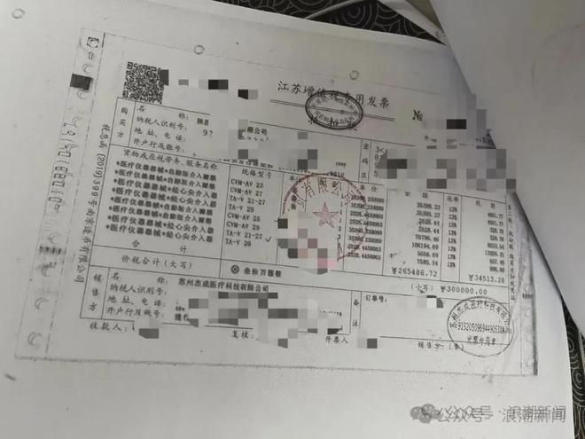 市监部门调取的发票显示瓣膜器械“进货价约3万元”,与收费存在巨大差距
