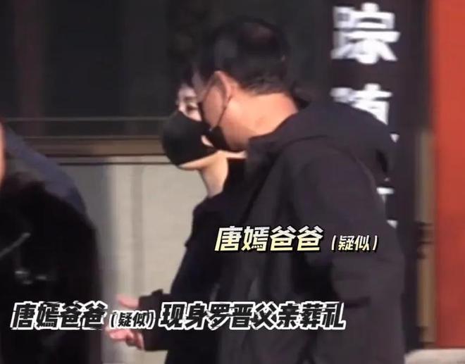唐嫣父亲疑似被拍到现身告别仪式,一身黑衣戴着黑色口罩,身边还有几人陪同。