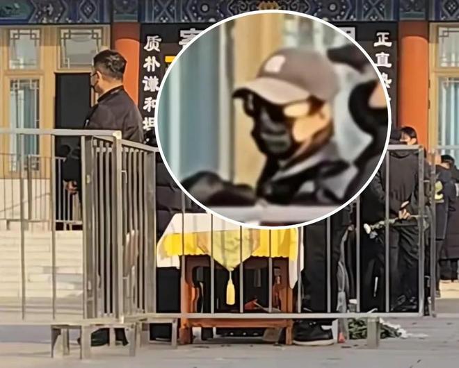 围栏入口处似乎还摆着桌子,看着像是家属在迎接签到,其中有一头戴灰色帽子,戴着墨镜口罩打扮非常严实的人,酷似唐嫣,桌子前侧还疑似有保镖站岗。