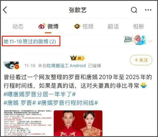 但后来张歆艺又点赞唐嫣和罗晋分居的内容,张歆艺和唐嫣还有过合作,这是吃瓜手滑,还是知道内幕为唐嫣抱不平?